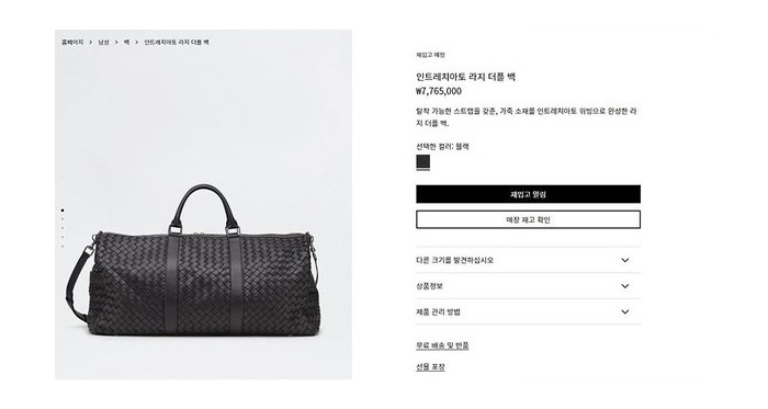 보테가베네타 인트레치아토 라지 더플백 [매장가 776만원대]