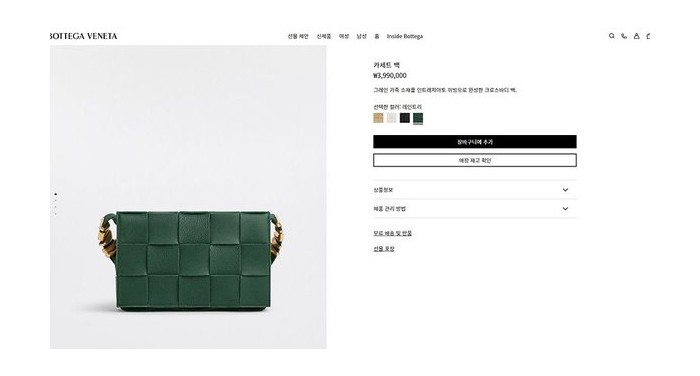 • 보테가베네타 카세트백 [매장가 399만원대]