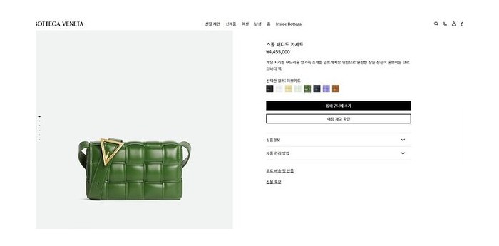 • 보테가베네타 스몰 패디드 카세트백 [매장가 445만원대]