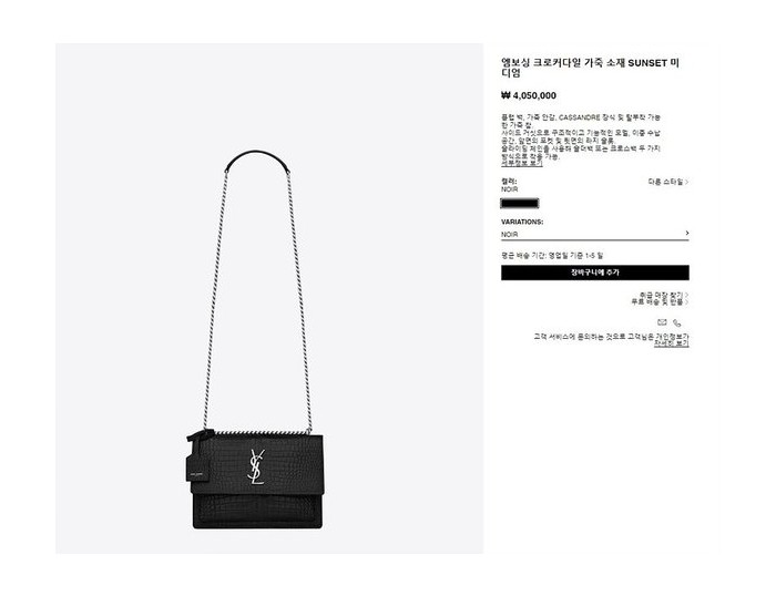 생로랑 엠보싱 크로커다일 가죽 소재 SUNSET 미디엄 [매장가 400만원대]