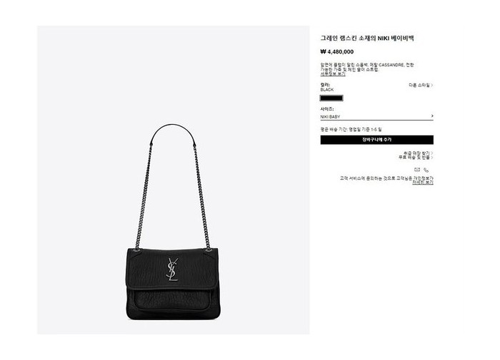 생로랑 그레인 램스킨 소재의 NIKI 베이비백 [매장가 440만원대]