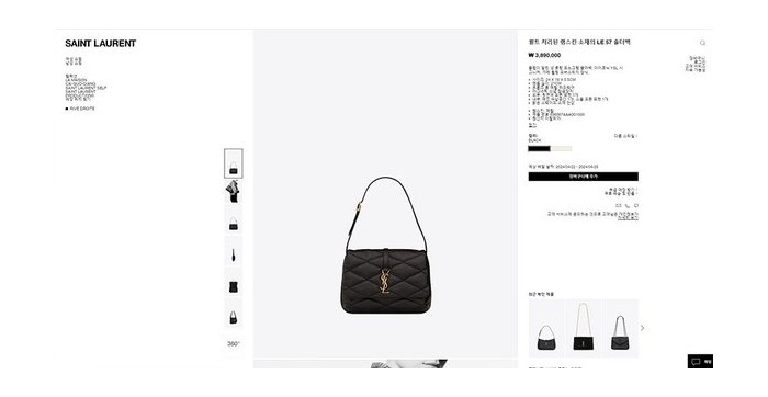 생로랑 퀄트 처리된 램스킨 소재의 LE 57 숄더백 [매장가 389만원대]