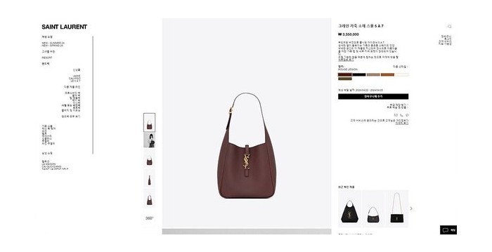 생로랑 그레인 가죽 소재 스몰 5 A 7 [매장가 355만원대]