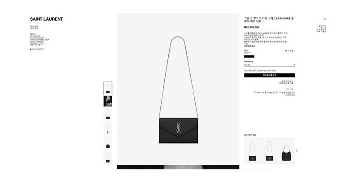 생로랑 그랑 드 뿌드르 가죽 소재 CASSANDRE 클래식 체인 지갑 [매장가 235만원대]