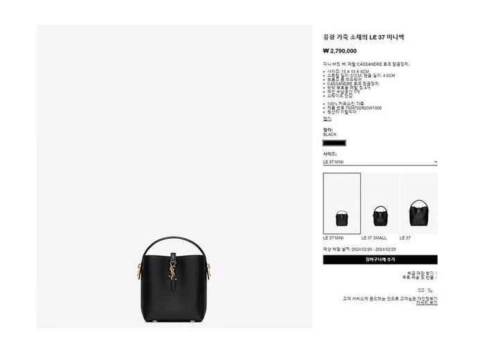• 생로랑 유광 가죽 소재의 LE 37 미니백 [매장가 270만원대]