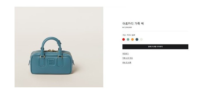 미우미우 아르카디 가죽 백 마리나블루 [매장가 330만원대]