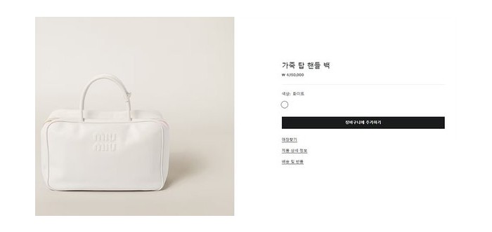 미우미우 가죽 탑 핸들 백 [매장가 410만원대]
