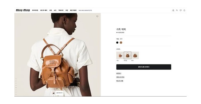 미우미우 가죽 미디엄 백팩 코냑 [매장가 465만원대]