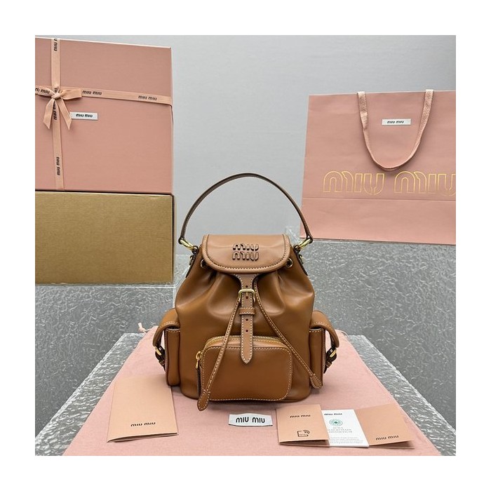 미우미우 가죽 미디엄 백팩 코냑 [매장가 465만원대] > Miu Miu