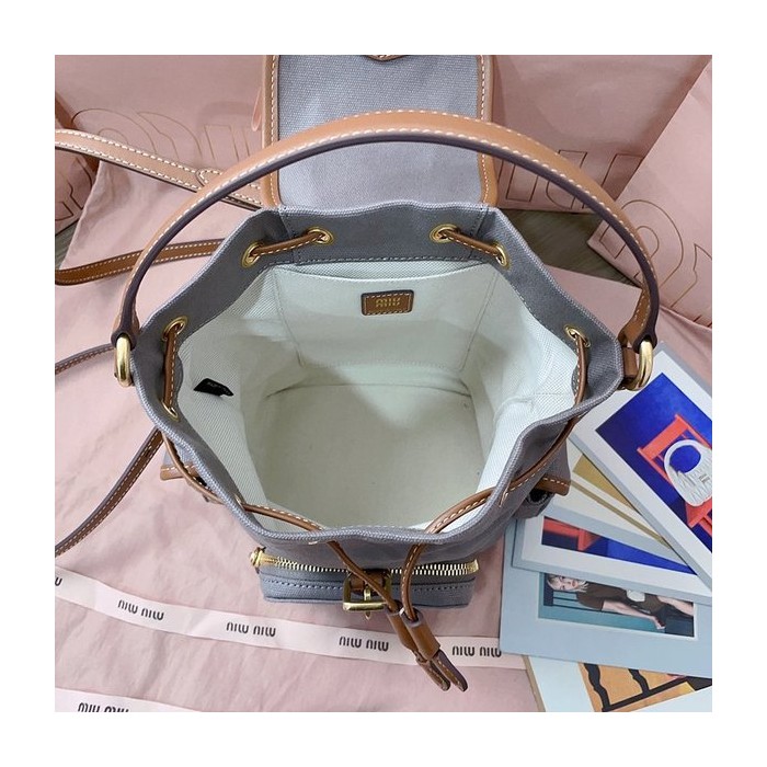 미우미우 캔버스 및 가죽 미디엄 백팩 알루미늄/브랜디 [매장가 290만원대] > Miu Miu