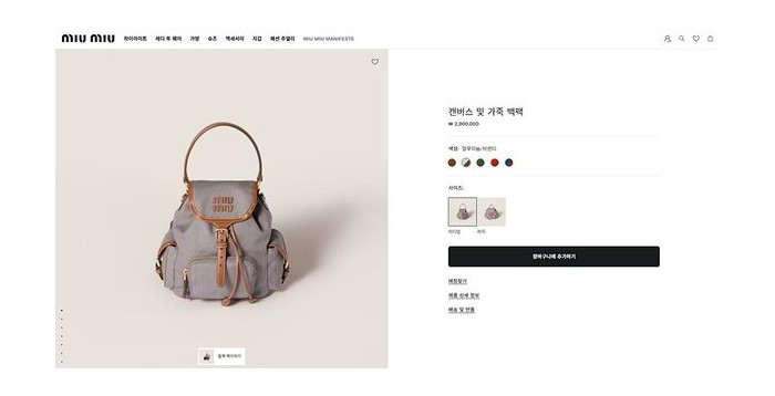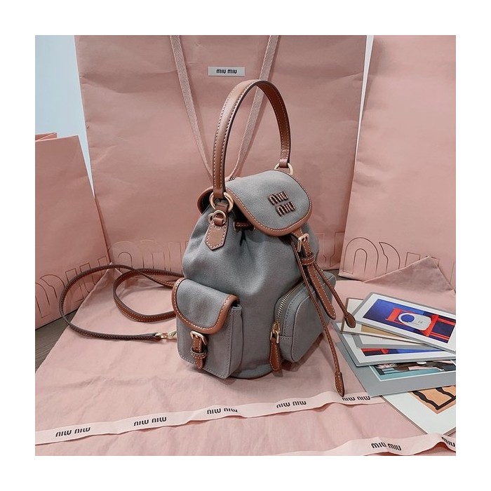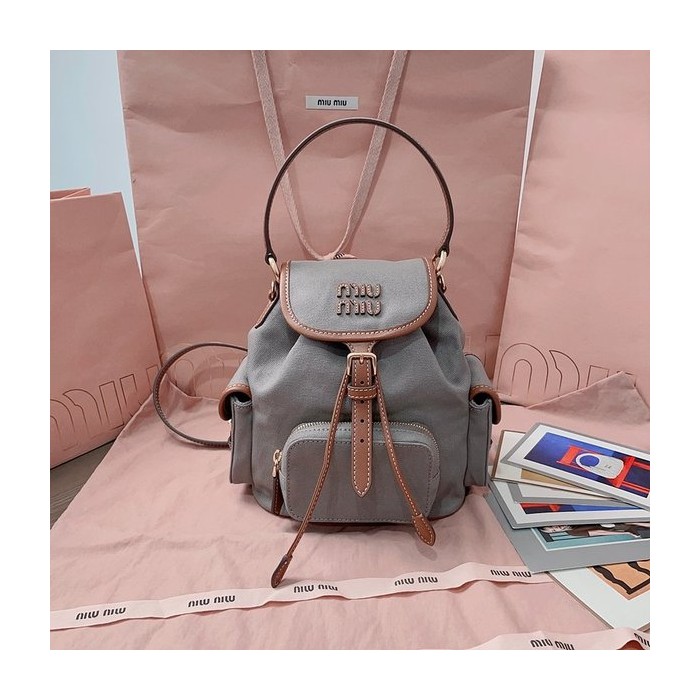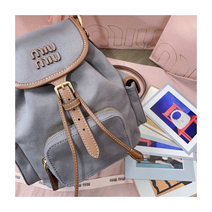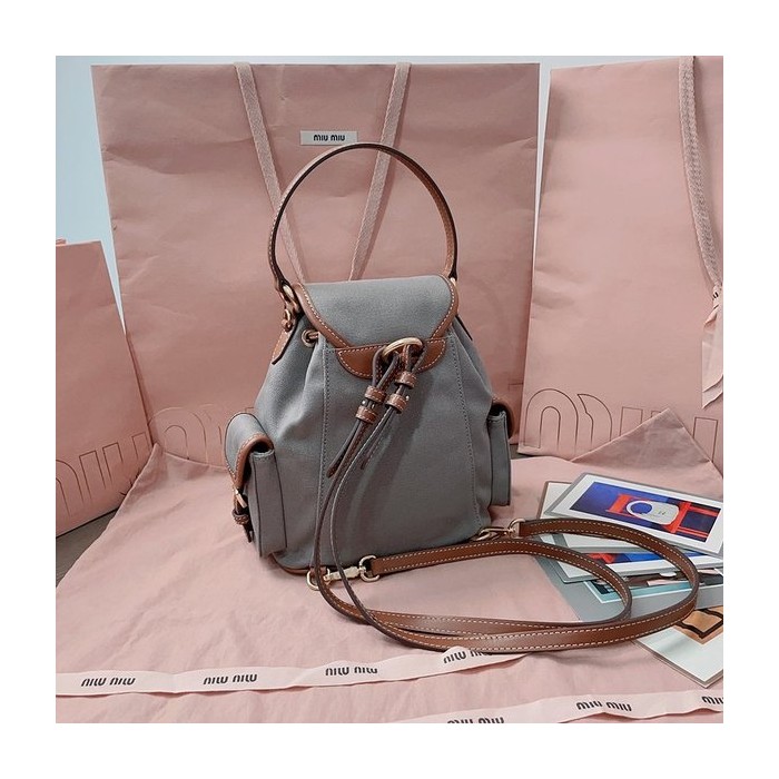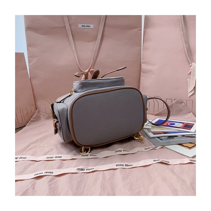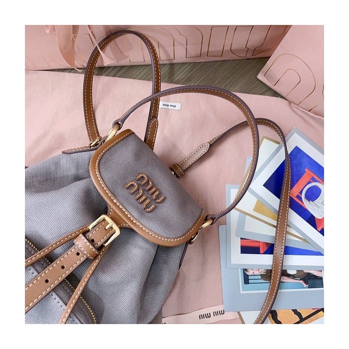 미우미우 캔버스 및 가죽 미디엄 백팩 알루미늄/브랜디 [매장가 290만원대]