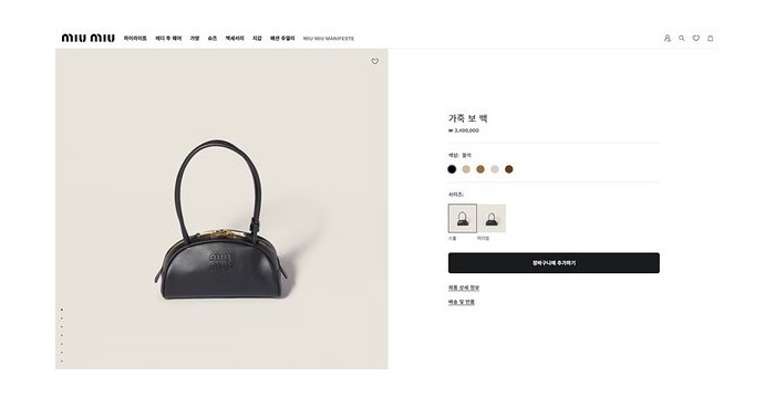 미우미우 가죽 보 스몰백 블랙 [매장가 340만원대]
