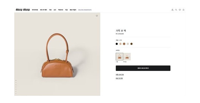 미우미우 가죽 보 스몰백 코냑 [매장가 340만원대]