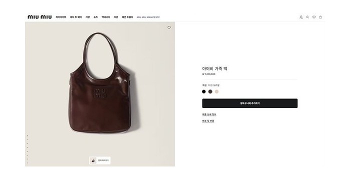 미우미우 아이비 가죽백 다크 브라운 [매장가 310만원대]