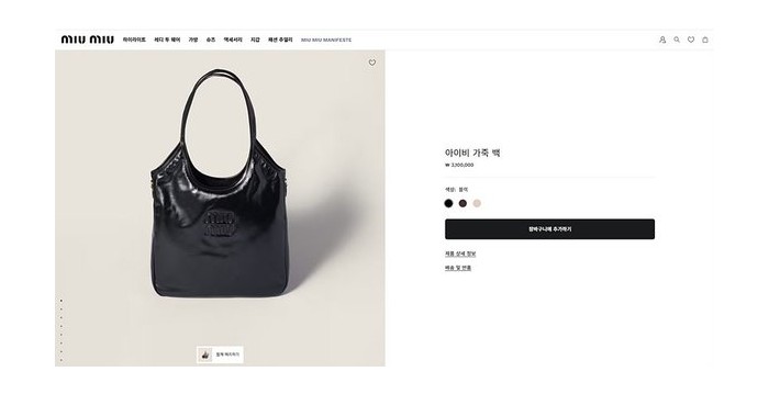 미우미우 아이비 가죽백 블랙 [매장가 310만원대]