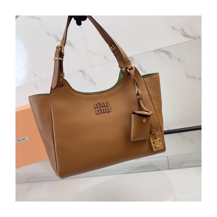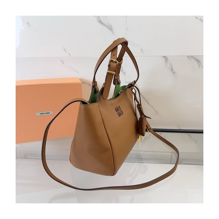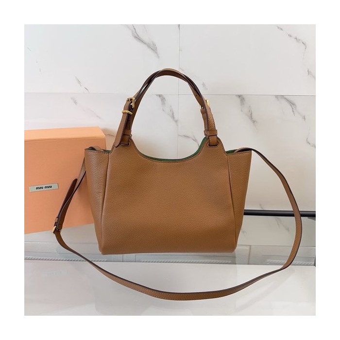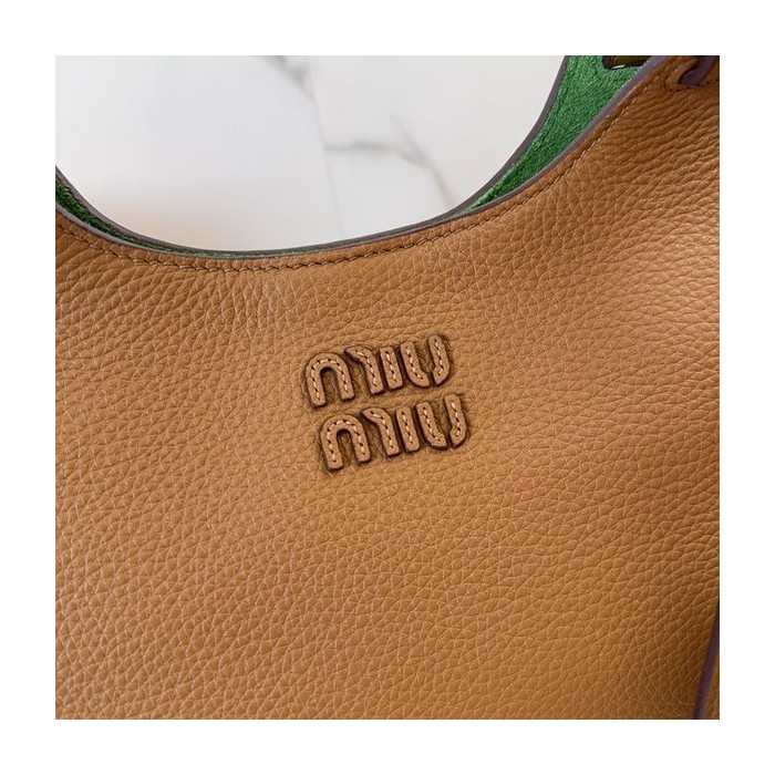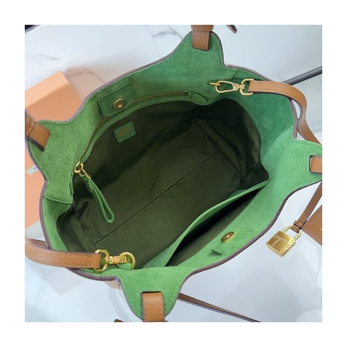 미우미우 가죽 핸드백 캐러멜/라치 그린 [매장가 395만원대]