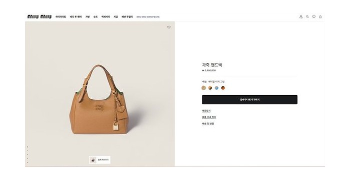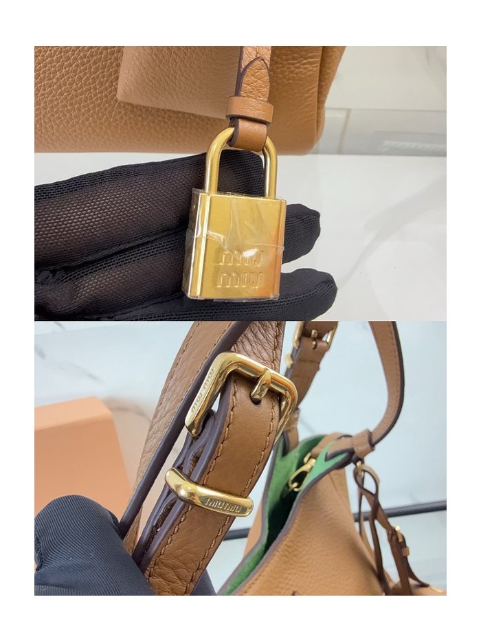 미우미우 가죽 핸드백 캐러멜/라치 그린 [매장가 395만원대] > Miu Miu
