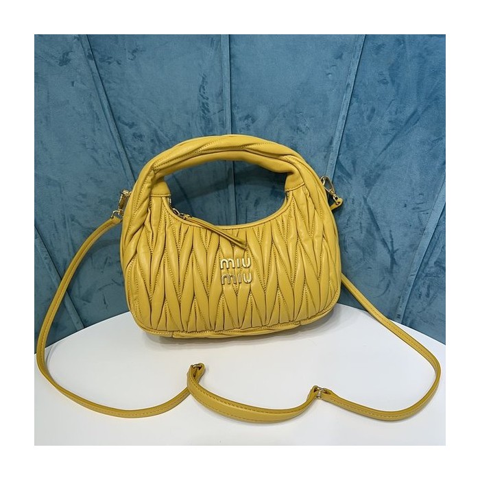 미우미우 완더 마테라쎄 나파 가죽 호보 미디움 백 / 옐로우 [330만원대]