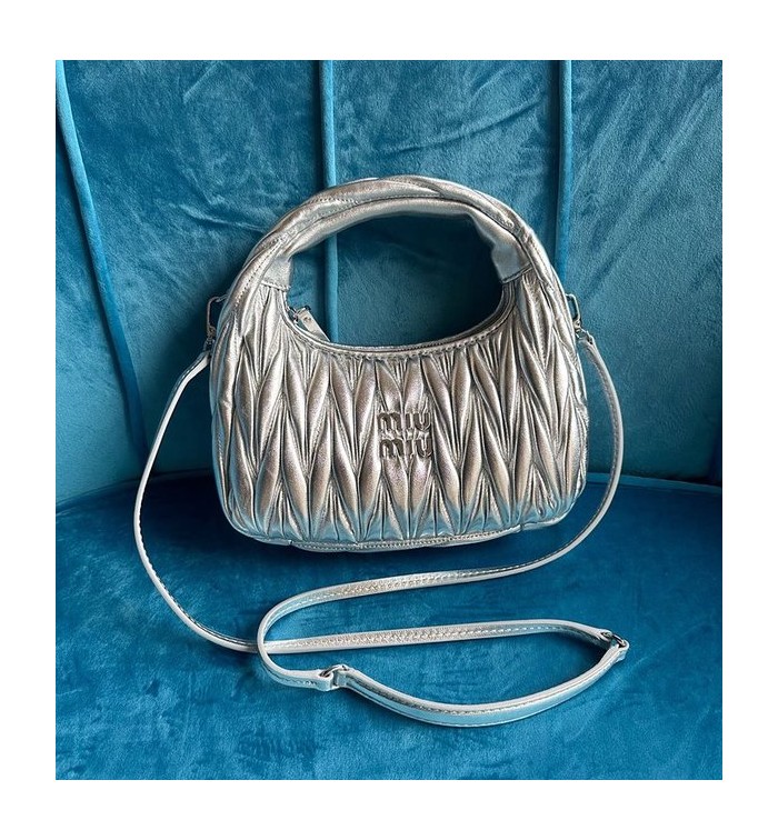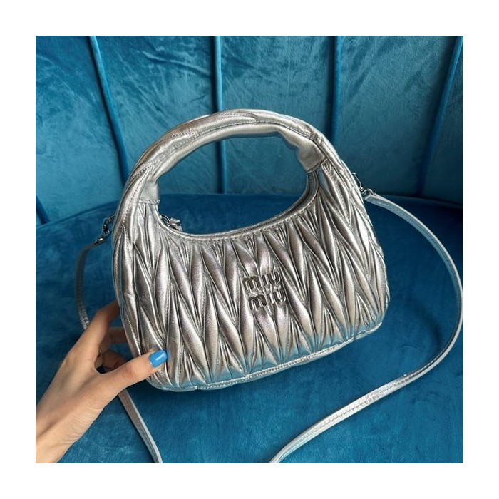 미우미우 완더 마테라쎄 나파 가죽 호보 미디움 백 / 실버 [330만원대]