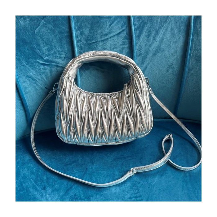 미우미우 완더 마테라쎄 나파 가죽 호보 미디움 백 / 실버 [330만원대] > Miu Miu