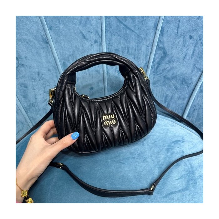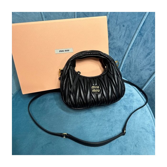 미우미우 완더 마테라쎄 나파 가죽 호보 미니 백 / 블랙 [매장가260만] > Miu Miu
