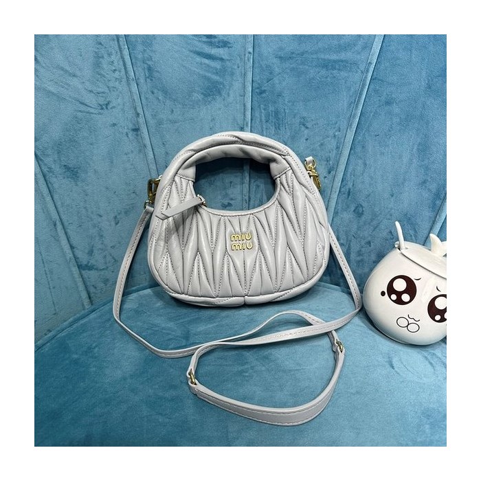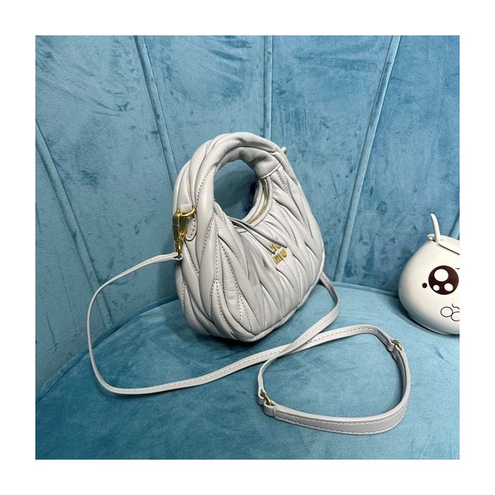 미우미우 완더 마테라쎄 나파 가죽 호보 미니 백 / 그레이 [매장가260만]