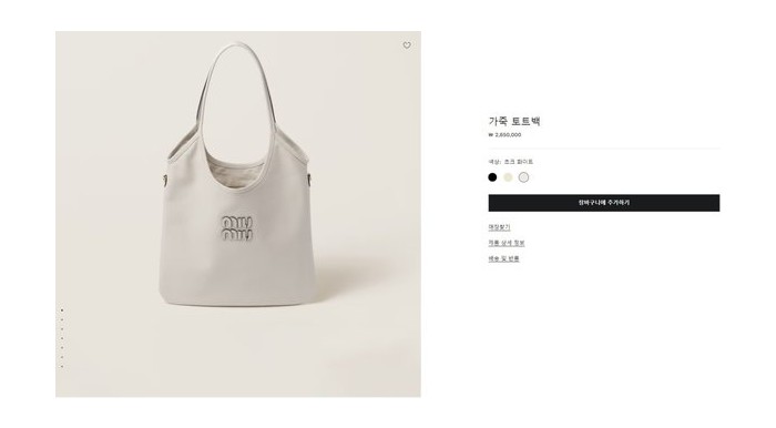 미우미우 아이비 아플리케 가죽 토트 백 / 화이트 [매장가265만원대] > Miu Miu