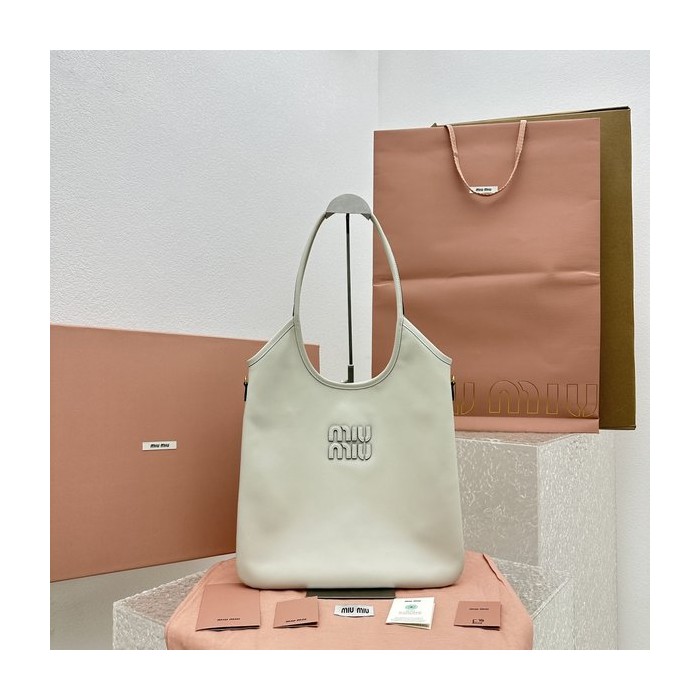 미우미우 아이비 아플리케 가죽 토트 백 / 화이트 [매장가265만원대]