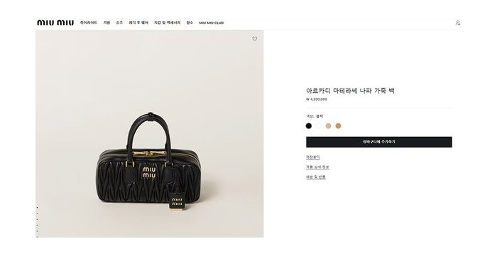 미우미우 아르카디 마테라쎄 나파 가죽 사각 백 블랙 [매장가 420만원대] > Miu Miu