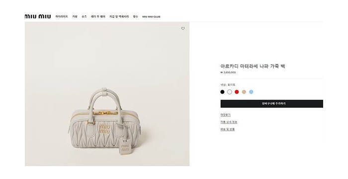 미우미우 아르카디 마테라쎄 나파 가죽 백 화이트 [매장가 360만원대]