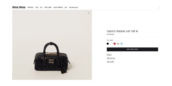 미우미우 아르카디 마테라쎄 나파 가죽 백 블랙 [매장가 360만원대]