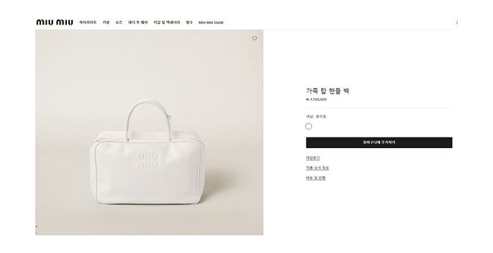 미우미우 가죽 탑 핸들 백 화이트 [매장가 470만원대]