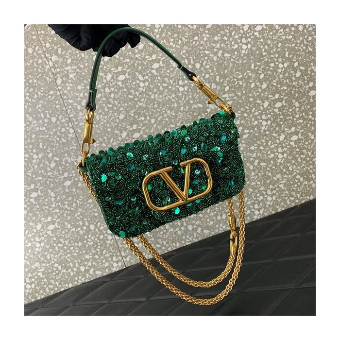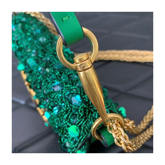 발렌티노 가라바니 크리스털 장식 스몰 로코 숄더백 / 그린 [매장가630만원대]