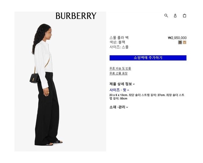 버버리 스몰 롤라 백 블랙 [매장가 290만원대]