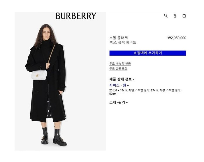 버버리 스몰 롤라 백 화이트 [매장가 290만원대]
