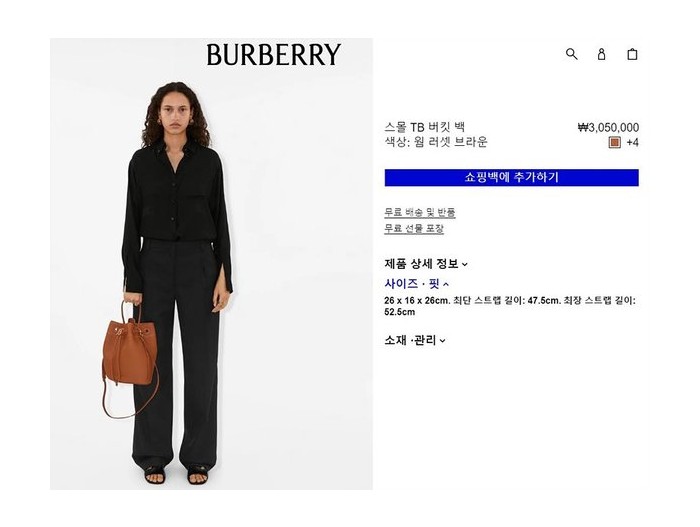 버버리 스몰 TB 버킷 백 웜러셋브라운 [매장가 280만원대]