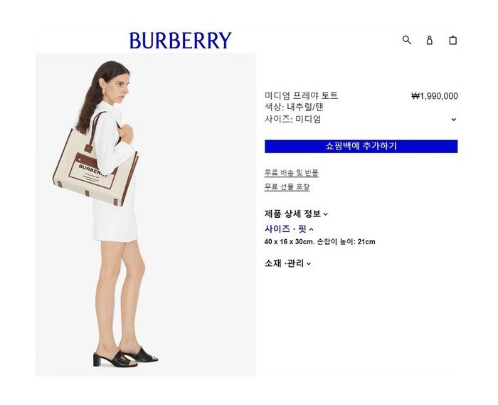 버버리 미디엄 프레야 토트 내추럴 텐 [매장가 190만원대]