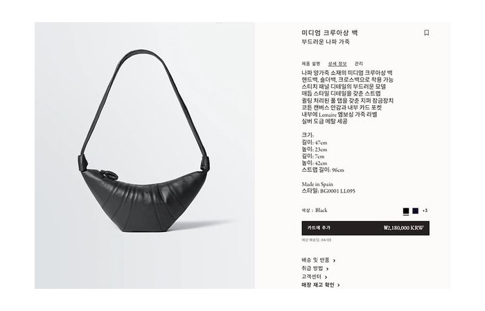 르메르 미디엄 크루아상 백 블랙 [매장가 218만원대]