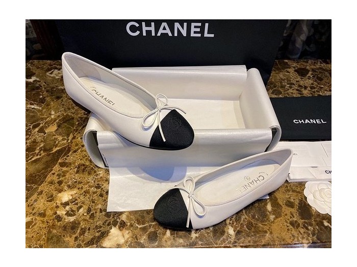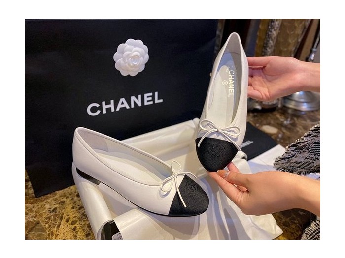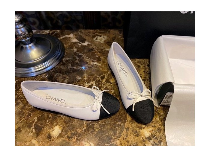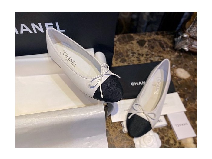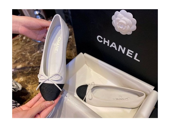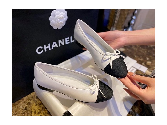 샤넬 화이트 블랙 투톤 리본 플랫 슈즈 [매장가 160만원대]