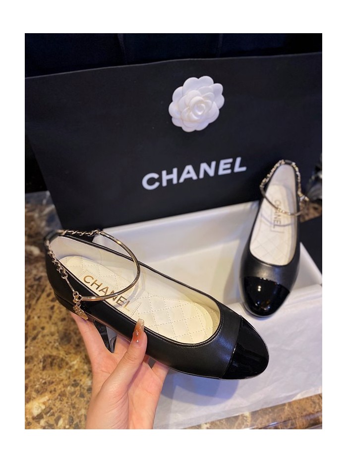 샤넬 발레리나 체인 스트랩 레더 여성 플랫 슈즈 [매장가 200만원대]