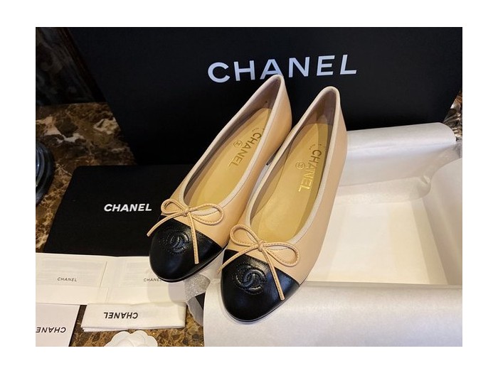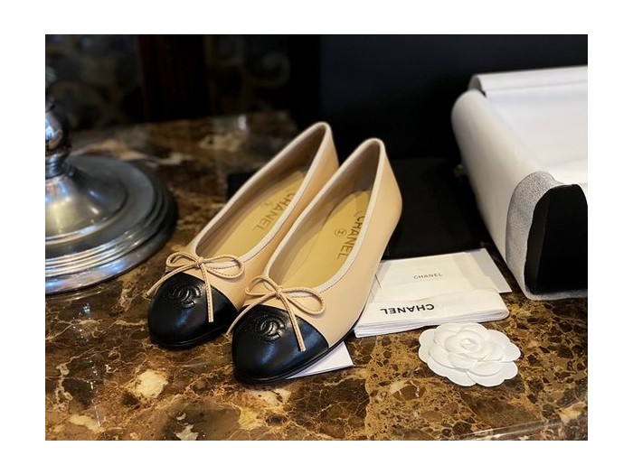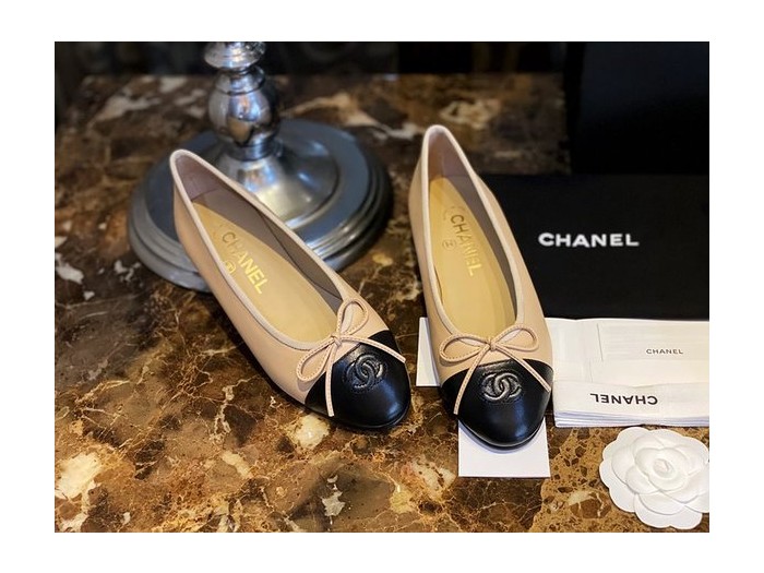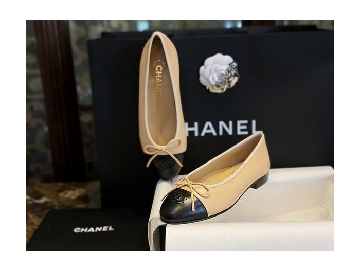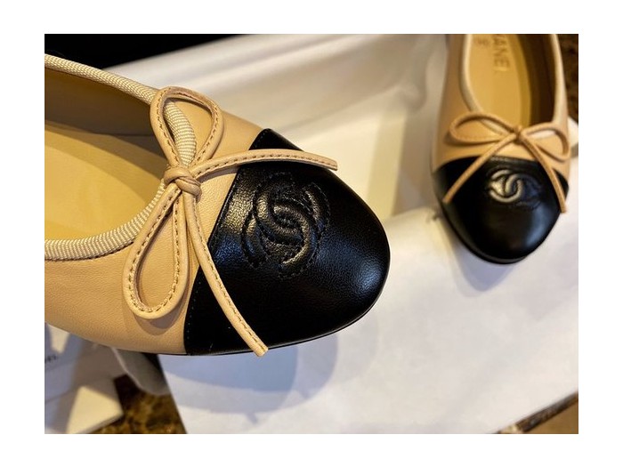 샤넬 베이지&블랙 레더 투톤 레더 플랫 슈즈 [매장가 180만원대]