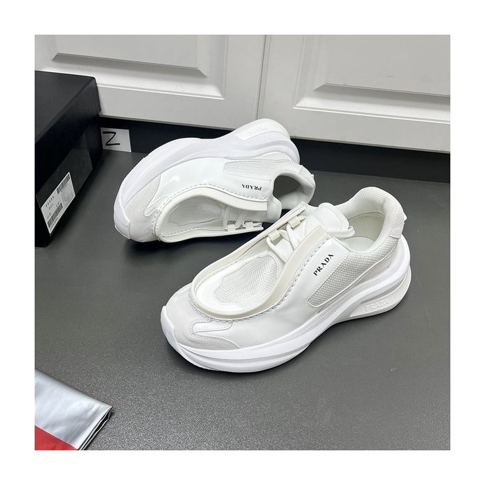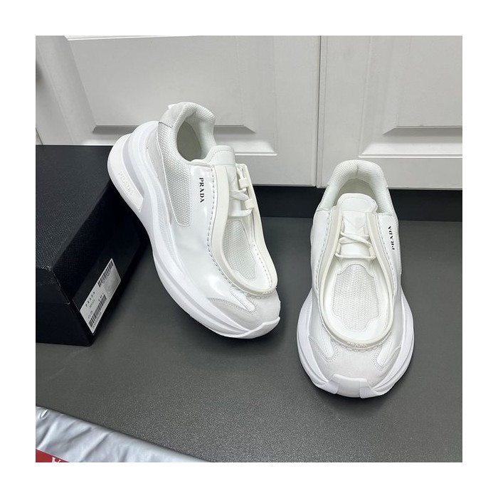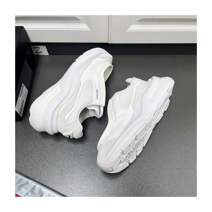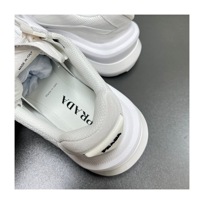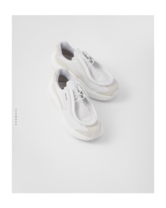 프라다 바이크 패브릭과 스웨이드 소재의 시스템 브러쉬드 가죽 스니커즈 / 화이트 [매장가190만원대]
