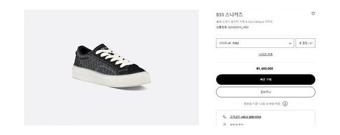 디올 B33 스니커즈 블랙 스무스 [매장가 140만원대] > 디올