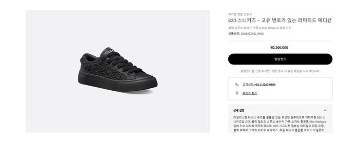 디올 B33 스니커즈 블랙 스무스 입체 자수 [매장가 230만원대] > 디올