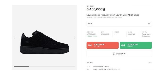 루이비통 X 나이키 에어포스 1 로우 바이 버질 아블로 블랙 [리셀가650만원대] > 루이비통