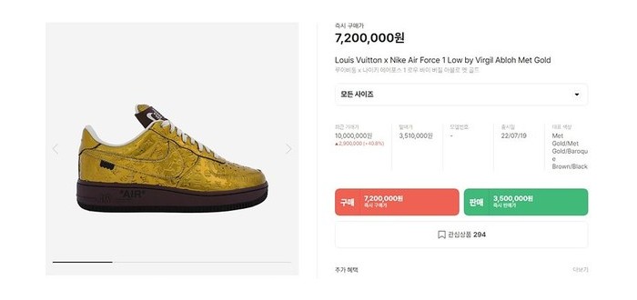 루이비통 X 나이키 에어포스 1 로우 바이 버질 아블로 멧골드 [리셀거1000만원대] > 루이비통