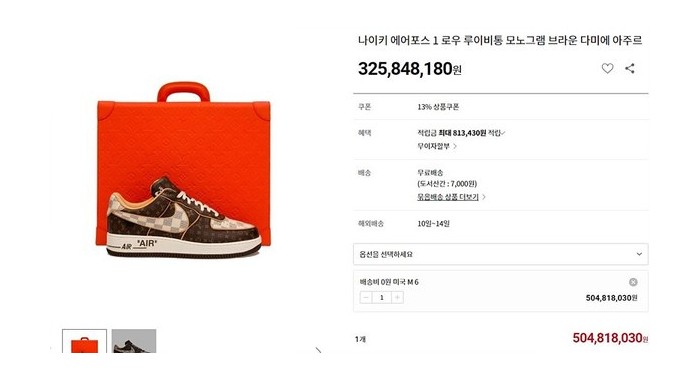 루이비통 X 나이키 에어포스 1 로우 바이 버질 아블로 다미에 [리셀가5억대]