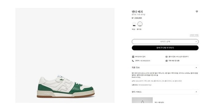 펜디 매치 화이트 가죽 로우탑 [매장가 140만원대]