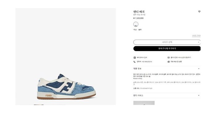 펜디 매치 블루 데님 로우탑 [매장가 140만원대]