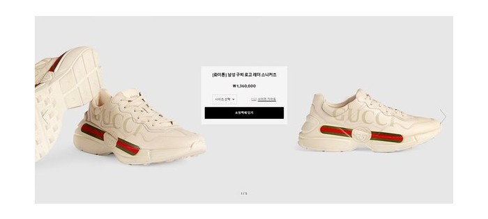 구찌 빈티지 로고 장식의 아이보리 레더 롸이톤 스니커즈 [매장가 130만원대] > 구찌